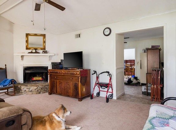 Great ranch home in a quiet neighborhood on a dead end street with TONS of storage! You enter the home to a large living room with vaulted ceiling and corner, stone fireplace. The spacious kitchen, with plenty of room for a table, offers plenty of cabinetry, a large pantry, and access to a laundry room with even more storage. This home has a bonus room open to the kitchen with vaulted ceiling that could serve as a formal dining room or a great room. Each of the bedrooms offer great natural light from the tall windows and a good sized closet. The master bedroom has a vaulted, beamed ceiling, and an ensuite full bath. Other features include a finished partial basement with outside access and a small deck that overlooks the yard. New HVAC and water heater!