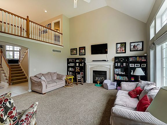 Fabulous home in Twelve Lakes Generous rm sizes throughout Enjoy a quiet evening on the patio overlooking your fenced, private lot. Catwalk overlooks two story foyer & family rm. Eat-in island kitchen granite and tile plus all appliances. Vaulted master plus bath jetted tub, separate vanities & walk-in closet. Built-in loft beds in 26 x 11 bedroom. First floor den. Finished bsmt features rec room, half bath and wet bar/kitchenette area granite tops, sink, beverage cooler and built-ins. Additional bsmt storage as well. Furnace & dishwasher new 2020. Refrigerator new 2019.