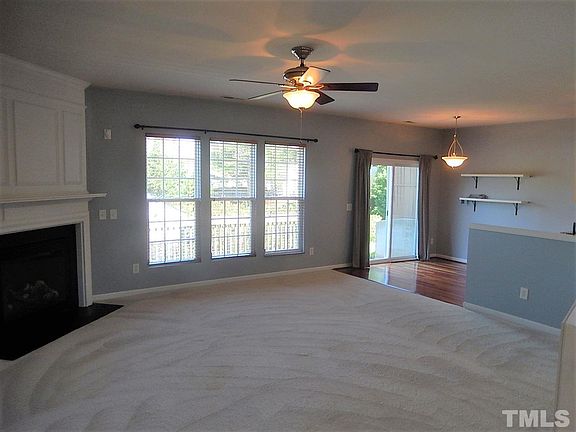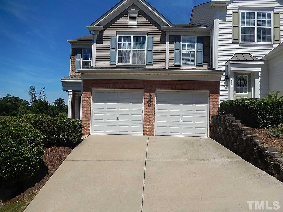 Gorgeous three bedroom end unit town home in a prime location. Two car garage.Open floor plan. Gas log fireplace in family room. Granite counter tops in the kitchen. Washer and dryer provided. Lawn care provided. Fresh paint and new carpet! Incredible elevated view from deck! Clubhouse, tennis courts and a pool included. Convenient to US-70, I-540, I-40, shopping and dining.