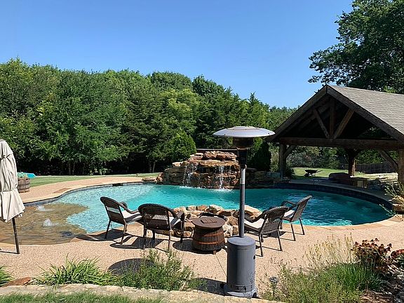 Beautiful home accented with stone and cedar is located in a great neighborhood - on a safe and quiet street. Large and inviting front porch shaded by large trees in the front yard. The house sits on a large greenbelt lot with a creek and many mature trees. An entertainers dream backyard with a swimming pool, swim up bar, large covered outdoor kitchen, poolside fire pit and a golf/chipping green. There is also detached shop that matches the home and contains a workshop/storage space as well as a studio, currently used as a music studio. Inside the home, you will find a an open concept living area that is overlooked by the kitchen and a large granite covered kitchen island. 3 bedrooms, 2.5 baths and a study are also located down stairs. A large game room/flex space and full bath are located upstairs. You can also access a large balcony that overlooks the beautiful backyard oasis. MORE PHOTOS TO COME!!!!