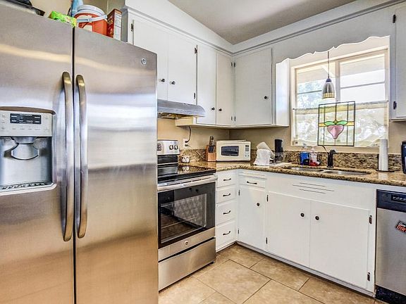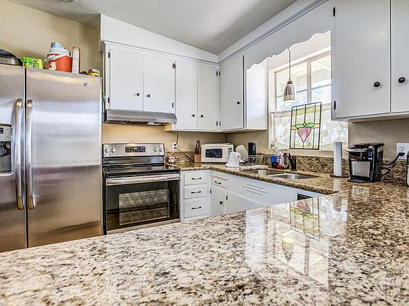 Absolutely Charming Mid-Century Modern Home with great curb appeal. Soaring ceilings, beautiful tile floor, soothing palette, and lots of natural light throughout. Granite kitchen counters, SS appliances, and plenty of white wood cabinetry with stylish hardware. Plush carpet in all the right places, window shades, ceiling fans, ample closets, and 2 updated baths. Enjoy the backyard covered patio w/extended pavered patio, fire pit area, and plenty of room for a pool! A must see Home on your list.