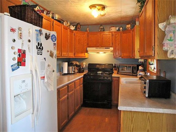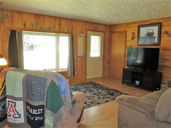 This ranch-style home is located just minutes from town on a semi-private, 1 1/2 acre lot on a no-through road. An inviting living room, smaller dining area & galley kitchen are located on one end of the home. Down the hall are 3 bedrooms & a full bathroom, which can also be accessed from the master bedroom. The lower level houses utilities, laundry, a three quarter bathroom & 2 partly finished rooms that would make a good office space or exercise room, but which do not have egress windows. The property has a blacktop driveway with extra parking, a spacious back yard & beautiful perennial gardens. The deck with hot tub & a patio with fire pit are accessed from the dining area or from the attached 1-car garage. Per sellers, updates in recent years include well pump (2019), water heater (2011), windows & vinyl siding (2006/2007), deck, seamless gutters & hot tub (2006) & driveway (2000). Appliances & a basic home warranty are included, & furnishings are negotiable.