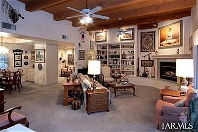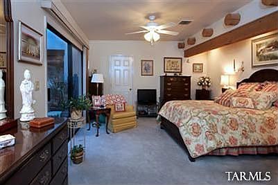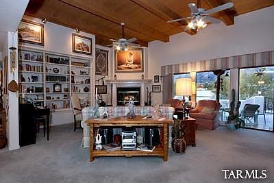 Santa Fe Gem w/spectacular mountain views tucked away in the popular Foothills neighborhood of Skyline Bel Air w/com. pool & rec area. 3 bds plus office in mastr ste. Great rm, formal dining rm, eat in kitchen w/oversize laundry rm w/area for extra computer station or craft center. Dramatic high beamed ceilings w/open floor plan meticulously maintained allergy pet free home. Enjoy mtn views from all rooms surrounded by the beauty of the AZ Desert