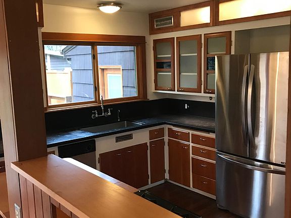 INCLUDES ALL UTILITIES (gas, electric, trash/recycling, water/sewer). This fully renovated 1946 duplex home is on a quiet, large lot with mature trees in the Cully neighborhood. Hardwood floors throughout; the kitchen features custom slate countertops and includes a gas range/oven, dishwasher, new refrigerator, and a kitchen island that serves as a two-person dining table. The bathroom has a custom slate shower surround as well as a convenient and modern sink and vanity area. The backyard outdoor room-sized dwelling/storage area (120 sq ft) is fully insulated and wired for electric and would make a great home office; it includes a second, wrap-around deck area. A second storage shed (120 sq ft) provides ample space for garden supplies and outdoor gear. There is a large (400 sq ft) private deck, a large driveway, and off-street parking space. The washer/dryer area has a private entrance from the deck and is shared with the occupant of the attached studio apartment. The #72 bus line is 1.2 block away. Its 1.3 miles to New Seasons market and Kennedy School, and less than one mile to Fremont and 42nd Ave. -The move in costs will be the first month rent ($2,250.00) plus a fully refundable security deposit of $2,250.00 The home is very private; however, laundry, garbage/recycling are shared with the occupant of the attached studio apartment. Please reply to this post to schedule a time to view the property. In the reply, please say a little bit about yourself. Thanks for looking!!