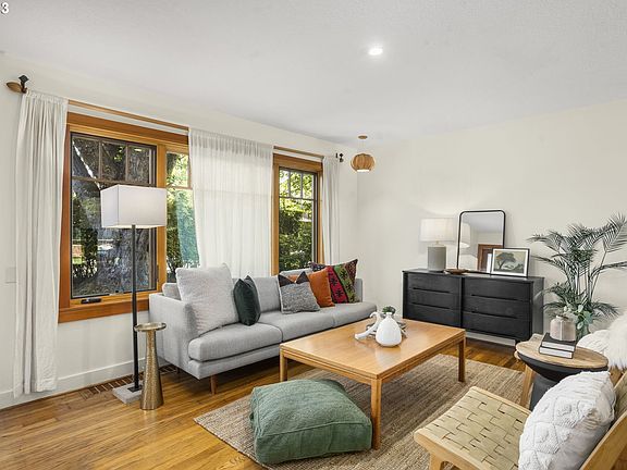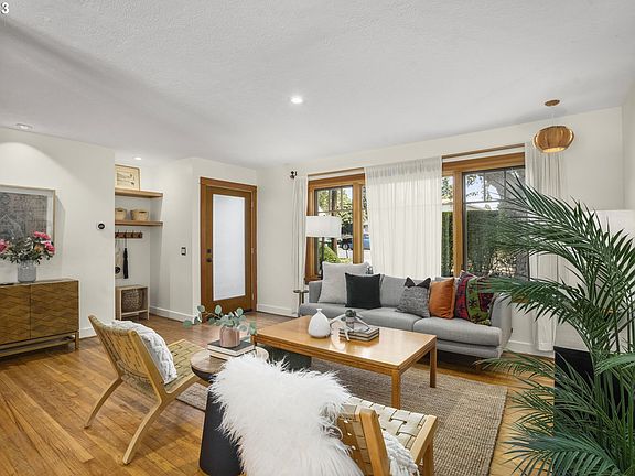 Opportunity knocks in Cully! Custom finishes and high-efficiency updates bring warmth and style to this fully renovated 1946 home with attached additional living quarters. Hardwood floors, gorgeous wood trim, and open concept living in the main home. The kitchen features slate counter tops, stainless steel appliances, and a kitchen island made from upcycled douglas fir. French doors open from the dining room out to an expansive deck overlooking the spacious and lush backyard. Two bedrooms in the main house, plus a full bathroom with tile and slate finishes, and a vaulted ceiling with skylight and hemlock tongue-and-groove detailing. The attached garage has been converted to potential separate living quarters, but is also easily incorporated into the main home. This additional living space has stained concrete floors and high ceilings, and includes a living area, eat-in kitchenette, bathroom, and its own private deck and backyard area. The bathroom features a custom slate shower surround, modern sink and vanity, and vaulted ceiling with skylight. The laundry room is thoughtfully shared by both units, each with separate and secure access. The home has been air-sealed and insulated, and features beautiful wood framed low-e custom Jeld Wen windows. Additional energy efficient features include LED canned lighting, a Rheem Heat Pump Water Heater (2018), and a new (2022) high-efficiency Daikin heat pump that heats and cools. The large lot is a tranquil refuge with mature trees and the fully fenced back yard provides plenty of space for gardening & entertaining. The detached studio makes a great office or yoga space, and is wired with electricity and fully insulated. Additionally, a large storage shed has plenty of room for your tools and gear. The peaceful Cully location is close to Fernhill Park, Kennedy School, New Seasons, and many hip NE restaurants, bars and shops. 9 out 10 home energy score! [Home Energy Score = 9. HES Report at https://rpt.greenbuildingregistry.com/hes/OR10215551]