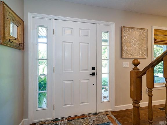 Country Home waiting for YOU!!! This New Carlisle property sets back amongst the trees on Scarff Rd. It offers 3 bedrooms and 2.5 baths. It was remodeled/updated several times since it was built in 1995. This home sets on 2.2 acres of wooded land with a nice grassy and landscaped area at the center of the property around the house. The back patio is a lovely space to entertain as you'll see in the night photos--it is enchanting! The kitchen is bright and comes with the major appliances which features a double oven! The HVAC is a newer Carrier dual fuel system, which is VERY efficient. The water is electric and since it is well water, the home has a water softener to protect the longevity of all appliances and piping. Combine that info with the maintained septic system, leach field, and well means the utility costs for this property are LOW! So this one is the charming, low cost upkeep, country home for YOU!!!