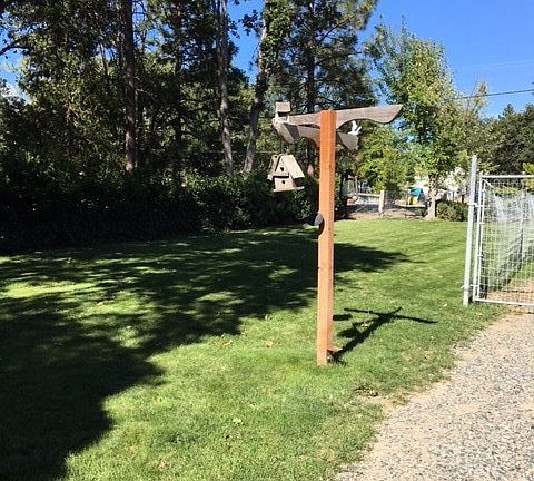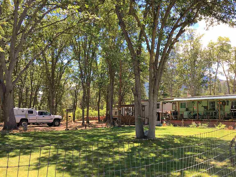 Enjoy the shade of the trees surrounding this property on nearly an acre (.80). Large covered porch overlooking front lawn with sprinkler system so can keep green all year long. Inside of home has been recently painted and bamboo flooring in hall and back bedrooms as well as new wood flooring in dining & Livingroom just installed this past week. Master bedroom has adjoining office with built in desk and also of Master you have access to the backyard. New toilets, sinks and faucets installed in bathrooms as new sink in kitchen. There is detached 24'x12' pump house garage area with large wood burning stove, shelving & work bench. In addition there is 18'x40' carport in back with custom shelving, work benches & lighting. Many added storage areas too. Electrical boxes have been upgraded. Don't miss out call for appointment.