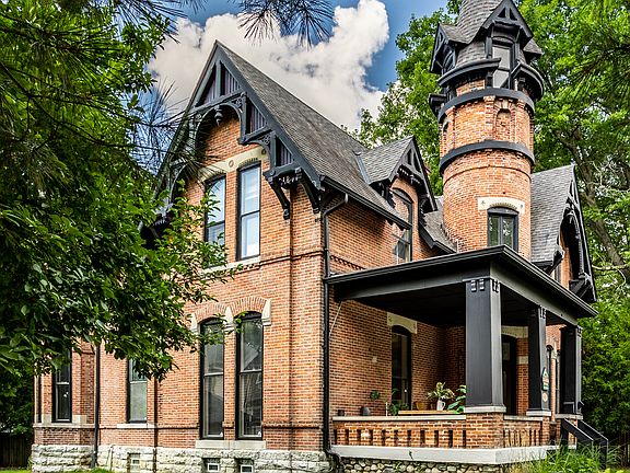 Showings Start Saturday, July 12 | Open Houses Saturday and Sunday from 1p - 3p | Welcome to Indianapolis' iconic and celebrated 1876 Johnson House, located on a spacious .32ac lot in the heart of Irvington off Irving Circle Park. | Fall in love with a rare example of a fully brick Gothic Revival Victorian home that's been thoughtfully restored and improved. Prepare for turrets with 360-degree windows that wow you. Ceilings soar at 12' (main and upper) in expansive rooms with generous windows, doors with transoms, and original hardwoods. Enjoy a total of six fireplaces of which three are operational on the main. Upstairs bedrooms, accessible by dual staircases, are substantial; and you will love the upstairs laundry room. Walk-up attic is enormous, don't miss it. Basement is spacious and perfect for storage. And please note the many recent upgrades in this 4,800sqft home including: 2025 - Quartz countertops. Bathrooms renovated. New ductwork with R-6 insulation on the main air distribution system. 2024 - Garage roof and gutters. Custom built-ins. 2023 - Exterior trim repair and paint. Downspout improvements.
