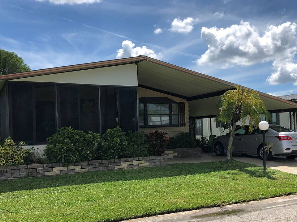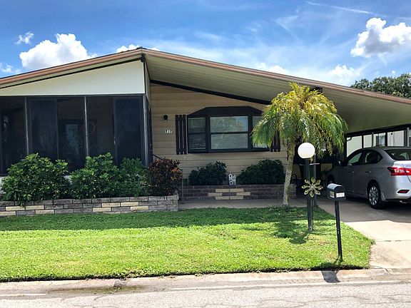 Well maintained 2 BR, 2 BA home in 55+ community of Windmill Manor in Bradenton, FL. The open floorplan boasts cathedral ceilings and unique built in shelves/cabinets. There is an enclosed Florida room accessible from the living room with vinyl windows and screens. Great for relaxing or entertaining on those beautiful Florida evenings. Covered patio in the front as well with plenty of sunlight for plant enthusiasts! The spacious dining room has a built in china cabinet and a side bar. Kitchen has plenty of counter space along with a breakfast bar and large pantry. Master bedroom has en-suite bath with a walk in shower, large vanity and his and hers closets. Large guest room with a built in desk and walk in closet. Attached shed with washer/dryer that could be easily moved into one of the indoor spaces. Plenty of parking with a carport and 2-car driveway. Central A/C new in 2014. Lot rent is $875/mo which includes 200 channel cable, sewer, trash, lawncare, land taxes and all park amenities. This 55+ retirement community is located within 10 miles of the coast, has organized activities, spacious clubhouse, game room, shuffleboard courts and community swimming pool. Close to local area shopping and dining. All listing information is deemed reliable but not guaranteed and should be independently verified through personal inspection by appropriate professionals. Integrity Mobile Home Sales cannot guarantee or warrant the accuracy of this information, measurements or condition of any property. Measurements are approximate. Lot rent subject to change.