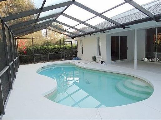 Lovely 3 bedroom 2 bath home with large walk in closets in Master bedroom and two family bedrooms. Gorgeous contemporary tile throughout the home. Wood burning fireplace. Screened pool enclosure facing dense mature foliage. Rent includes pool, lawn and pest services. The home is located in Longwood Run which is deed restricted community-overnight street parking not allowed, commercial vehicles or motorcycles must be stored inside 2 car garage or not allowed. Non smoking home. No cats.