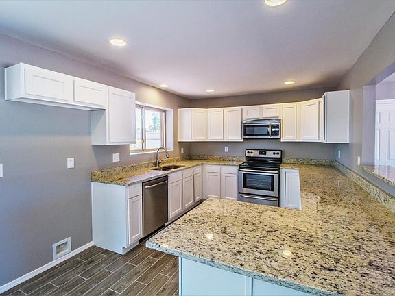 Owner will accept/counter offers from $234, 900-$239, 900. Stunning home in fantastic Central location, boasting an abundance of upgrades inside and out! Soothing neutral interior palette, beautiful wood look tile and brand new carpet throughout. Gourmet kitchen w/ new SS appliances, granite countertops, and breakfast bar! Open family room and dining area make this the perfect home for entertaining. Desirable split bedroom floorplan, 4 spacious bedrooms including huge master suite plus another bedroom with adjoining bath! All bathrooms feature stylish tile surround showers and upgraded fixtures. Huge backyard with low care landscaping and mature trees. Front yard also boasts extra large driveway plus basketball hoop on extra slab. A must see!