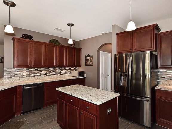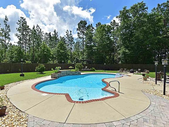 POOL HOME on .55 ACRE LOT~. 5 bedrooms and 3 baths LOOK NO FURTHER because this is the one. The front and back yard of this home is lush and perfectly maintained with hours and hours of sweat equity that YOU WILL INHERIT. Mature ornamental trees and shrubs throughout as well as your own garden with tomatoes and blueberries. Did I mention the amazing 5 bedroom home with large den and amazing kitchen? This homes plan is the amazing MACKENZIE plan and it offers three zones for bedrooms and two living area zones for the family who likes their own space. Well equipped kitchen with GRANITE and all the. STAINLESS appliances you will need including the refrigerator. Large galley hall off the kitchen has a large pantry as well as the laundry room . This area is set up like a butlers pantry area in that it is hidden from guest yet just off kitchen for convenient access. Master suite is on the back of the home and offers TREY CEILING and access to the covered patio and pool area. This large suite offers a spacious place to call your own with a owners spa bath that will be YOUR SANCTUARY . With LARGE DOUBLE Vanity and Granite counters, plenty of storage with linen closet, private water closet, tiled shower AND a soaking garden tub what more can you ask for? OH WAIT you asked for a HUGE walk in closet----you have that too. The back yard is absolutely a RESORT like experience . The owner has created a wonderful landscape around the pool with HARDSCAPE Pavers creating various zones for your family. With this LARGE .55 ACRE YARD you will not run of space for your family or your pets----There is a nice dirt dig pit for the pooches so they will leave the grass alone as well as a covered gazebo for night star gazing or little morning coffee while the kids swim. The money this homeowner has put into this property is way more than what you pay to own this beautiful home....Why by a home and put a pool in when you can have THIS amazing paradise ready to go. Come see today!