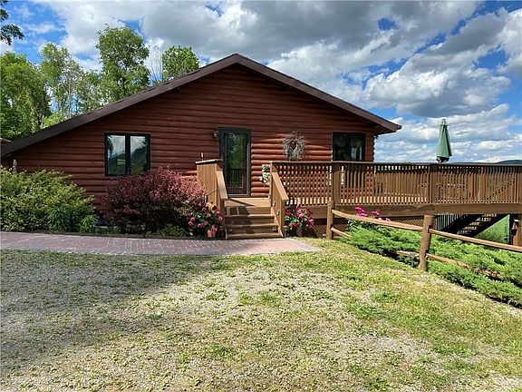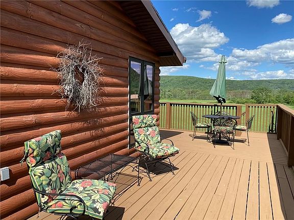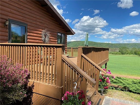 LOOK AT THIS AMAZING PROPERTY ! 4 bedrooms, 2 full bath, AWESOME cathedral ceiling, 2 levels of living space with a Gorgeous wrap around deck to admire the FABULOUS view! This beautiful home has such a unique presence to it! The home itself features, living rooms in both the first and lower finished level, full bath on both levels, cool spiral staircase down to the high end-updated kitchen and dining/family room area, with a front door to walk right out to the great covered patio!! You'll also find Mitsubishi split type wall air condition/heating units, spacious laundry room, 80 gallon electric hot water heater along with 3 electric thermal storage units, water softner & whole house water filtration system. Another really great feature is a 24x20 out building with both electric, heat & AC! Seller uses it as her quilting studio, however it could be man cave, storage , entertainment area, playhouse for kids, the list goes on! The lovely property also has a huge 2 car detached garage & an adorable gazebo in a private secluded area ! Centrally located near Bath, Corning, Hornell, and the Finger Lakes region! Enjoy the world famous Keuka/Seneca/Canandaigua lake wineries!!!!