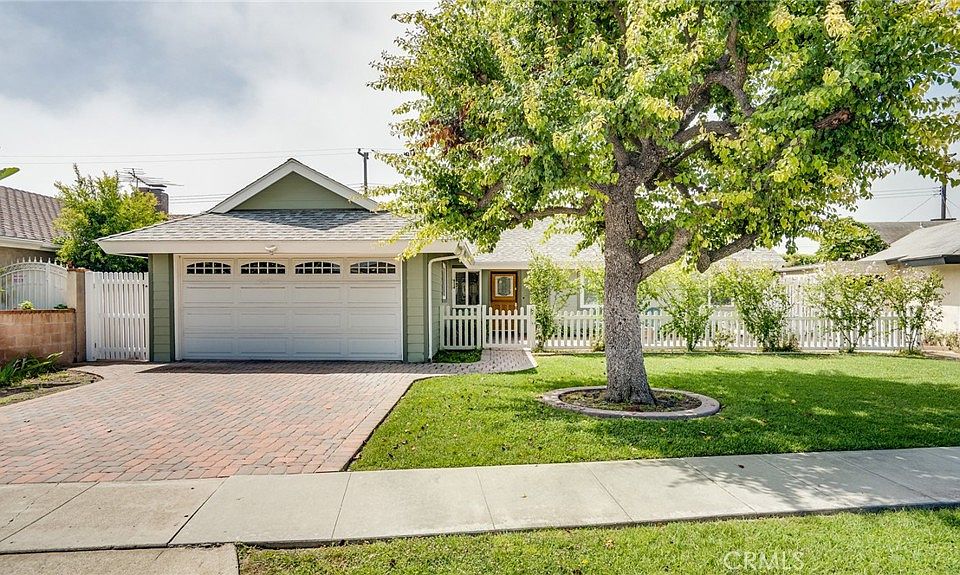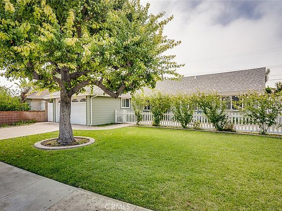 Fabulous interior tract location beach home with excellent curb appeal and tons of quality upgrades throughout. From the moment you drive up, this one feels like Home! There is a mature tree out front , with a pavers driveway, walkway & patio, enclosed with vinyl fencing. As you enter the home through the gorgeous Dutch door with pocket screen, you are greeted by elegant hardwood flooring, which runs throughout the majority of the house. To the left, there is a full sized dining area, adjacent to the kitchen. The kitchen has been completely remodeled with custom cabinetry, including pull-out & lazy Susan drawers, granite counters, stainless steel appliances, including a Viking cook top, a vent hood, built-in microwave, Kitchen Aid dishwasher, oven & refrigerator, which is included with the sale + tile flooring. Next comes the formal living room with built-in cabinets, including accent lighting, a fireplace with gas log set, stacked stone facade + granite hearth, and a French door leading to the rear yard. There are 4 nice sized bedrooms, the primary has a ceiling fan. The hall bathroom has a bathtub with tiled enclosure + tile floor. The primary bathroom has been remodeled, featuring an extended walk-in shower with tile surround + glass door, granite counter & tile flooring. Bonus features include; tubular skylights in the kitchen, hall & bath, smooth ceilings, panel doors, dual pane windows, a pull down ladder for attic access, newer water heater + a 30 year roof that was installed in 2018. The private rear yard features a pavers patio, stainless steel built-in BBQ, a retractable awning, large grassy area, timed sprinkler system, block wall fencing and a sunny South facing exposure. This lovely home is walking distance to award winning schools, a park, golf, shopping, restaurants and is only a 5 minute drive to the beach!