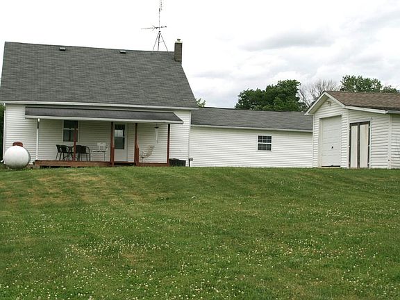 Great bones on this home in Oak Hill Schools, ready for you to move in and make it yours, the hard parts have been done already! Walking in the front door into your enclosed sun room that has baseboard heat and lots of windows to let the sunshine in and take in the beautiful country setting around you. Next you will come to he nice sized living room with newer laminate flooring, which also exits into the master bedroom with laminate flooring. A Jack and Jill bathroom adjoins the master bedroom with the second bedroom on the main level, the bathroom features a nice walk in shower and the second bedroom also has laminate flooring. You can access the large kitchen with nice oak cabinets from the living room or the second bedroom. Head upstairs where you enter onto a big landing with original hardwood floors with a bedroom on each side of the landing. Exiting the backdoor is a nice 8x21 covered deck to take in the beautiful setting of the land surrounding you. In the backyard there is a detached shed and lean to that is 368 sqft total with 110 power ran to it. Also in the backyard are 5 mature apple trees. Home has a newer roof that is about 10 years old, and a newer gfa furnace and new vinyl replacement windows.