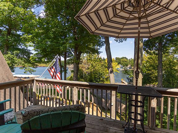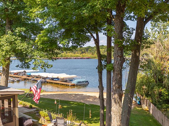 4 Bed, 2 Bath Turnkey Condo in the sought after CHALET DU PAW PAW Condo complex. Breathtaking views of Lake Paw Paw from this unit and a short walk to the association beach, tennis court, beach volleyball, and your own boat slip with boat lift included! Open concept living area with an abundance of north light and lake views through two, oversized patio doors. Loads of counter seating at the island and a gas fireplace in the living room both great for entertaining. Primary bedroom, a second bedroom, full bathroom, and laundry all on the main level. The upper-level features 2 bedrooms and another full bathroom. Spacious storage room in the rafters comes in handy for those larger seasonal items. One-car garage with power a stone's throw from your front door. Low HOA dues!