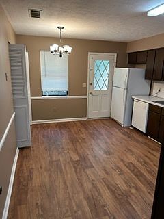 THE PRICE IS RIGHT! Affordable 2 BR 1 BA Duplex, Charming Living Room, Recently installed Luxury Vinyl, Updated Kitchen With Eating Area, Dishwasher, Stove and Brand New Refrigerator plus/Ice Maker, W/D Connection, Central H/A, Convenient location that is close to Schools, Churches, and Shopping, and Ft.