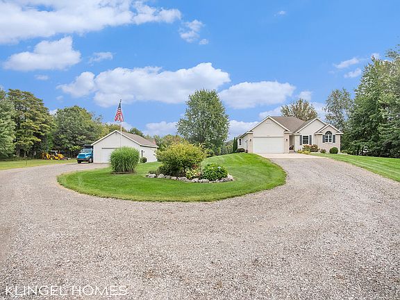 Welcome to 5632 Sullivan Rd, Nunica! This beautiful ranch style home is situated on almost 10 acres of land and offers serene views! This home has been recently updated with gorgeous luxury vinyl plank flooring throughout the entire main level, neutral paint tones, and modern light fixtures! The open concept floor plan will allow you to entertain your guests flawlessly! Heading into the kitchen you are welcomed by white cabinetry, granite countertops, stainless steel appliances and a beautiful breakfast nook! The expansive primary bedroom offers a sitting area, and an attached ensuite with a beautiful double vanity and tiled stand up shower! Also on the main level are two additional bedrooms, one of which can be used as an office space! Heading to the fully finished lower level, you will see an additional family area with a walkout and view to the beautiful pond! The lower level also features 2 additional bedrooms, full bathroom and laundry area! The exterior of this home has been meticulously maintained and offers gorgeous landscaping, white picket fence, and 2 large outbuildings! This home is a must see! Call today to schedule your private showing!