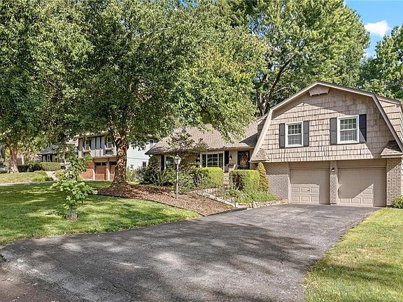 Impeccably designed residence nestled within a coveted Overland Park cul-de-sac! Gleaming hardwood floors, tasteful paint hues, and an array of refined selections create a seamless move-in experience. The kitchen boasts elegant granite countertops, new stainless-steel appliances, new sink, faucet & disposal, pristine white cabinetry, and a charming window banquet. Remodeled bathrooms showcase luxurious marble and intricate glass tile mosaics. Throughout, upscale lighting fixtures & window coverings exude high-end design. Outside, an in-ground sprinkler system, fenced backyard, and covered patio enhance the living experience. The oversized garage offers ample storage. This meticulously maintained home features new windows and a replaced sewer line, ensuring lasting quality. The lush backdrop of mature trees, new perennial landscaping and new stone patio provides a serene setting for relaxation and leisure. Enjoy the advantage of a cul-de-sac location, just a brief stroll from Meadowbrook Park and Trailwood shopping center making this an exceptional opportunity.