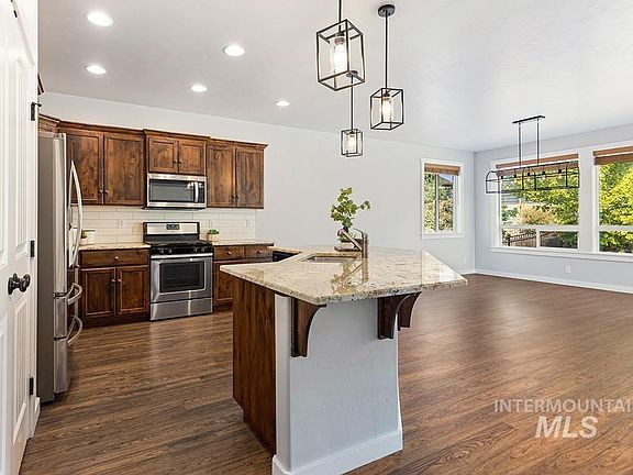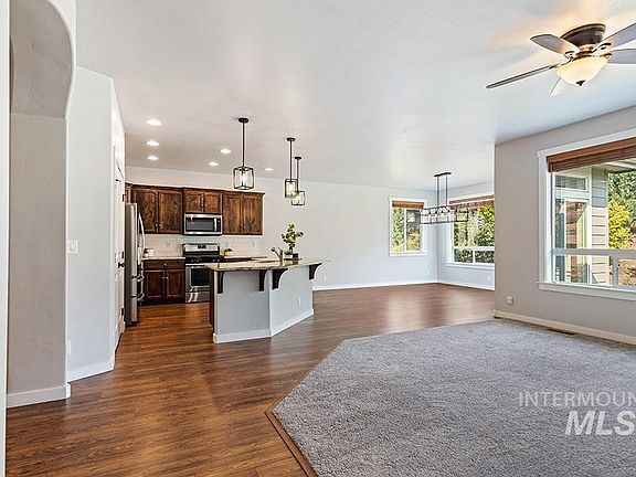 Amazing value in Avimor! Perfectly positioned, this exquisite single level residence is conveniently located in the flats to benefit from many of the community's incredible lifestyle amenities just steps from the front door. Soaring ceilings & grand windows provide the spacious great room with abundant natural light and create an inviting atmosphere throughout the home. The stylish kitchen features dark wood cabinetry, stunning granite countertops, a suite of stainless steel appliances, & a kitchen island with a breakfast bar. Avimor provides a community-forward lifestyle & extensive amenities including: community center (indoor pool, fitness room, library, & group activities & clubs), outdoor pool, convenience store with gas station, local brewery/restaurant, coffee shop, pickleball & other sport courts, Novus School Academy, & neighborhood access to miles & miles of hiking/mountain biking trails. Embrace a life of comfort and convenience in this vibrant and well-appointed foothills neighborhood.