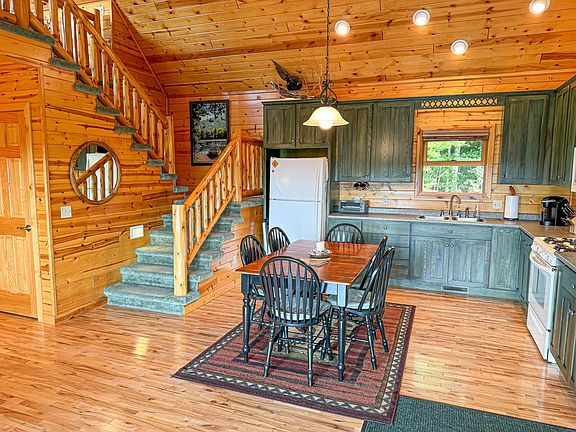 The centerpiece of Hardwood Heights is a custom-built cabin, crafted in 2004 and meticulously maintained ever since. This 2-bedroom, 1-bath retreat offers just under 1,260 square feet of living space with hardwood floors throughout and a vaulted ceiling that fills the home with natural light. Enjoy year-round comfort with forced air heating powered by a 1,000-gallon propane tank, plus modern conveniences like high-speed internet and underground electric. The 571-foot-deep well supplies pure, refreshing drinking water. The kitchen is designed with functionality in mind and features near-new appliances included in the sale, making this cabin move-in ready.