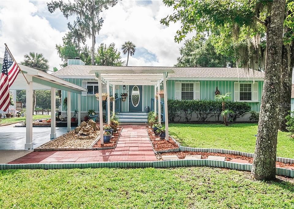 Amazing waterfront home on the St. Johns River. This property has the charm of Key West. The main house is a 3 bedroom, 2 bath home with a 2-car carport, a separate workshop, large storage building & above ground pool with decking around it. Also a small separate bedroom and bath with room for a kitchen. Brick paths leading to the large dock and a long the waterfront. Large deck great for entertaining is located directly over the river. Dock has two electric boat lifts. Inside the home has hardwood and parquet flooring. Exposed beams in the kitchen and family room. Wood burning fireplace. Views of the wonderful river which leads to Lake George. This is a beautiful and peaceful place. A perfect place to spend the rest of your life. Front fountain and bench do not convey. Square footage received from tax rolls. All information intended to be accurate, but can not be guaranteed.