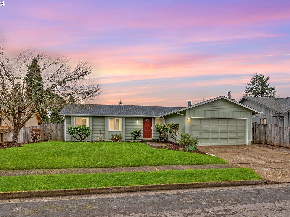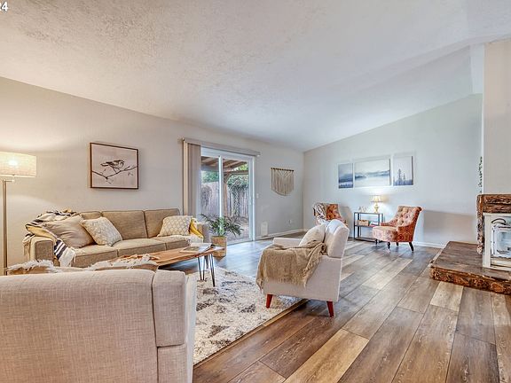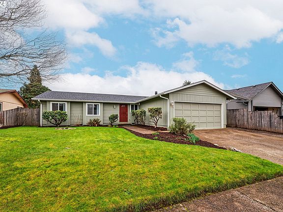 Welcome to this charming home in the highly sought-after Thurston Neighborhood! Move-in ready and 1-level, this residence is a testament to meticulous care and maintenance, ensuring a comfortable and inviting living experience. Sunny kitchen with a fantastic pantry and newer counters. Huge vaulted living room and dining room connected with a fireplace adds a touch of coziness. Nice size primary bedroom has an attached bath and oversized closet. Recent upgrades include a new roof installed just last year, all new flooring, newer furnace and heat pump, newer exterior paint, and vinyl windows. Fully fenced back yard feels very private with mature landscaping, complete with a wood-lined shed/bunkhouse with power. Don't miss the opportunity to make this gem yours!