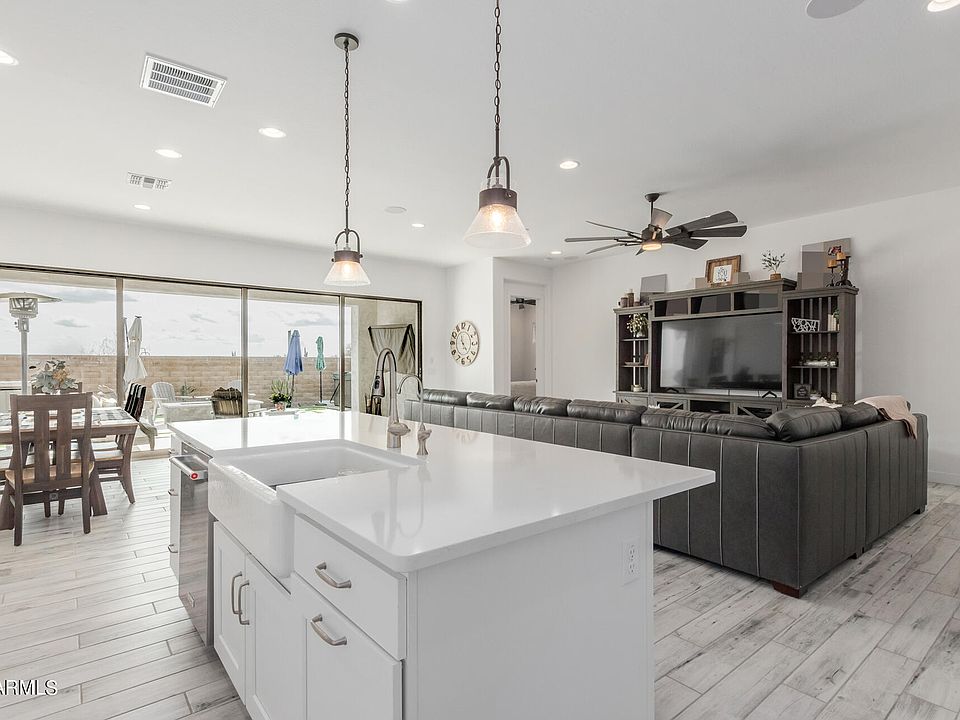 Why buy from builder when you can have this nearly NEW, impeccably appointed with ALL the finishing touches in this RESORT Style GATED Comty! Pure luxury with wood look tile plank flooring T/O entire home, leading you to a dramatic 20' sliding wall of glass in the oversized great room. Entertain with ease in the gourmet kitchen, boasting upgraded KitchenAid appliances, including a 36'' GAS cooktop and refer, complemented by white cabinets/soft close and upgraded Quartz countertops. 8'' interior doors. Your low main. backyard paradise awaits, featuring turf, extended travertine, a BBQ grill with attached island, and a luxurious Jacuzzi! Additional features include a French drain at the side yard, rain gutters, and a Kinetico water filtration system t/o home ($7K value). Welcome home!