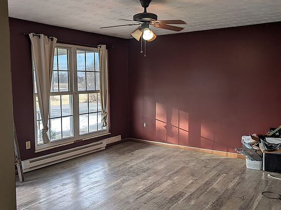 3 Bedroom, 1.5 Bathroom, 2 Family Rooms (Dining, living or family rooms). House Is set up as a standard three bed one bath ranch with a large addition on the back of the house featuring a half bath. Approximately 1322 square feet on .9 acres. Heat: Electric baseboard and Wood stove (included). Wall A/C units. Well insulated property. New Metal roof in 2021. Attached garage and detached single car garage. Metal shed included.