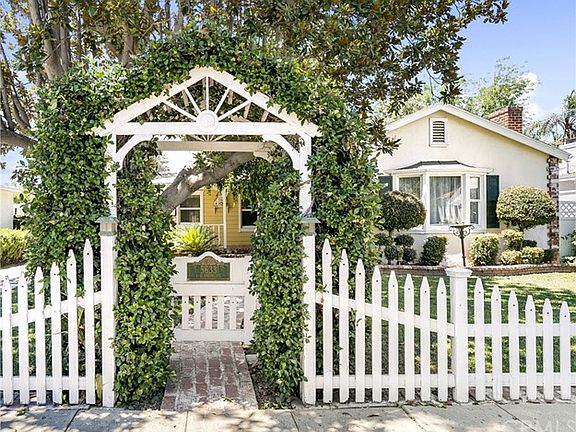 Quintessential cute ...AND built by Harry Marsh! This is what the historic Wood Streets neighborhood is all about. White picket fence, classic front porch, and beautiful shade trees. THREE bedrooms (one is a master suite), 1.75 bathrooms (one has a claw foot tub and dual sinks), and over 1300 sq ft. The kitchen boasts granite counters, built-in microwave, and a breakfast nook, in addition to the formal dining room. Hardwood floors throughout, newer central air/heat, dual pane windows, crown molding, ceiling fans, and separate indoor laundry! Living room with fireplace, decorative vintage floor heating vents, and an enclosed step-down sun room (family room) with Saltillo tile floors overlooking the serene backyard. Outside you're greeted with a low-maintenance yard, wood deck, large fountain, gazebo with swing, and attached shed behind the 2-car detached garage! Walking distance to the Riverside Plaza (shopping, movies, restaurants, etc) and just a quick drive to all the happenings in downtown Riverside. Lovely location and great neighbors! Hurry, as this won't last long.