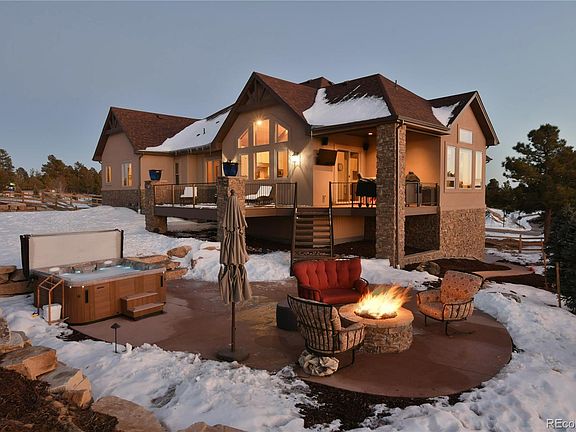 THIS SPECTACULAR HOME HAS A MOUNTAIN FEEL, SURROUNDED BY TOWERING TIMBERS* WITH UNOBSTRUCTED VIEWS OF PIKES PEAK AND VIEWS OF FRONT RANGE* FRONT PATIO W/FIREPLACE TO ENJOY WATCHING DEER WANDER BY* GOURMET KITCHEN WITH BERTAZZONI PRO 6 BURNER DOUBLE OVEN W/GRIDDLE* DOUBLE REFRIGERATOR* PANTRY* SOARING GREAT ROOM W/FIREPLACE* MOTORIZED SHADES IN LIVING & DINING ROOMS* EXECUTIVE STUDY* MASTER SUITE FEATURES FIREPLACE, ACCENT WALL TILE* FIVE PIECE MASTER BATH, WALK IN CLOSET* MAIN FLOOR GUEST SUITE* LAUNDRY ROOM WITH ACCENT TILE WALL, SINK AND CABINETS* FINISHED WALK OUT BASEMENT WITH A FAMILY ROOM/REC ROOM, GAS FIREPLACE* CUSTOM WET BAR INCLUDES REFRIGERATOR, EXERCISE ROOM/FLEX ROOM & TWO ADDITIONAL BEDROOMS, 1 FULL BATH, 3/4 BATH & 1/2 BATH* SURROUND SOUND WIRING IN LIVING AREAS, MASTER BEDROOM, FRONT & BACK PATIOS, GARAGE* ADT ALARM SYSTEM W/RING DOORBELL* BEAUTIFUL LANDSCAPED FRONT & BACK YARD ON ONE ACRE LOT* MANY PINE & BLUE SPRUCE FOR PRIVACY* FULLY FENCED BACKYARD W/FIRE PIT* MARQUIS 5-PERSON SPA* EPOXY FLOOR IN OVERSIZED 4 CAR GARAGE* SELLER HAS ADDED $154K IN IMPROVEMENTS TO LANDSCAPING & PATIO, HOT TUB, SMART HOME CONVERSION TO INCLUDE ENTERTAINMENT, SOUND & LIGHTING, BLINDS WINDOW TREATMENT, NEW FLOORING, WALL TREATMENTS, MUD ROOM CONVERSION* SHOWINGS START SUNDAY, MARCH 1, 2020!!