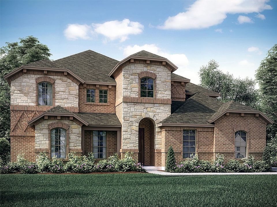 GORGEOUS NEW JOHN HOUSTON HOME IN MIDLOTHIAN ISD! 2-Story 4 Bedroom-3 Full Bath-3 Car Side-Entry Garage, SPACIOUS Third acre corner lot with a Study, Game Room! Home features 20' ceilings in entry and living, stunning rounded staircase in the entry, open concept Kitchen-Family Room with corner fireplace with stone to ceiling, downstairs Guest Bedroom with Full Bath, study, and extended covered patio on main level. Upstairs Jack-and-Jill Bedrooms-Bathrooms, with a catwalk across to Game Room. Additional features include 8ft. interior doors, white painted cabinets, buff mortar, wood floors in main areas, Coach Lights, and much more! This is Must See! Ready Late April 2023.