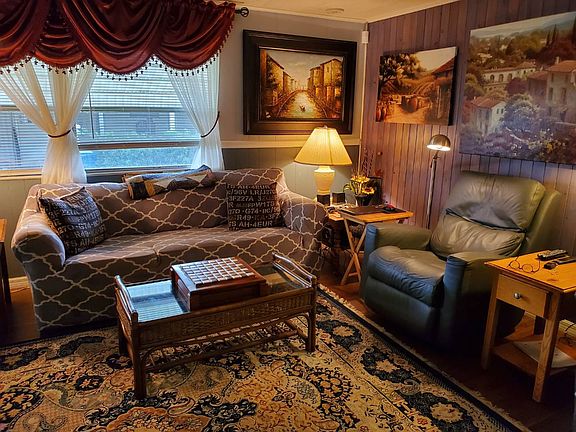 Surrounded by beautiful flowers and luscious greenery you will find this lovely 2 bedroom, 2 bath home. It offers a refrigerator, stove, microwave, dishwasher, washer, and dryer. All appliances are in 2019. It has an attractive sunroom and lanai and a storage shed with a large work area, in fact, this home has a lot of storage space. The kitchen has an open concept and has an amazing island. This is a real beauty. The floors are 2018, with some carpet and laminate. There are a carport and a large driveway. The roof is 2019 and has a roof over and has central air and the air conditioner was replaced in 2018. This home has a new vapor barrier and a new electrical panel, new windows in the lanai as well as a new irrigation system. Wow! what a home. Lot rent is 880.55 and includes water, trash, lawn care, sewer, and cable. Located in Windmill Manor, this great park offers a clubhouse, pool, Gameroom, shuffleboard, billiard room, and a library. There is a good-sized dog park since it is pet friendly, 2 pets are allowed. Call me to view this home, you will be pleasantly surprised. All listing information is deemed reliable but not guaranteed and should be independently verified through personal inspection by appropriate professionals. Integrity Mobile Home Sales cannot guarantee or warrant the accuracy of this information, measurements or condition of any property. Measurements are approximate. Lot rent is subject to change.