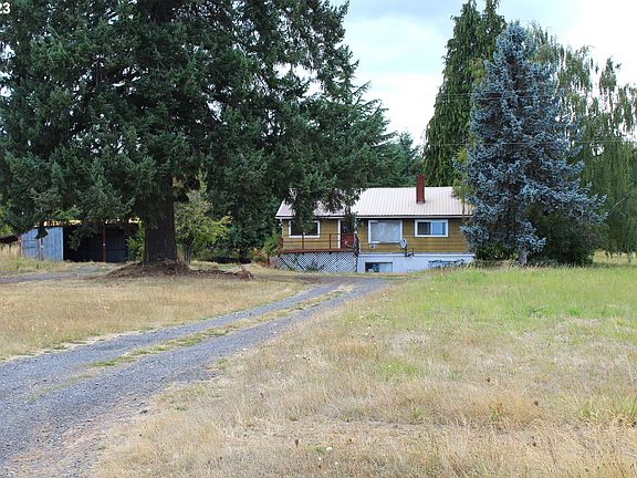 Mt. Hood & Territorial View! This 1949 fixer offers loads of potential. 4 bedrooms and 1 bath on the main level, partially finished basement with family room and a 2nd bathroom, multiple fireplaces, and more. Located on 3.85+/- acres with fruit trees, 2 septic systems, shared well, multiple outbuildings (carport, RV Storage, and workshop), plus beautiful territorial and mountain views. Single wide on property of no value. Grandfathered in for two dwellings. Buyer to do own due diligence.