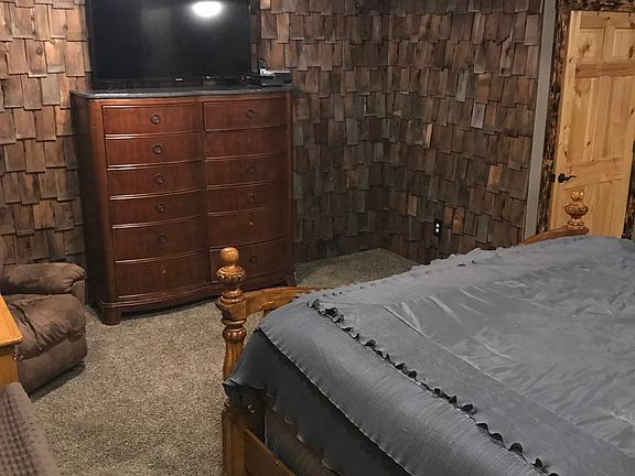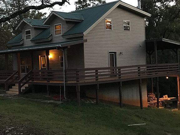 House in the woods! Secluded 4 bed/3bath home on 50 ac m/l. Oak hardwood floors, granite counters, cherry cabinets, an awesome wrap around deck, open living room/kitchen, 2 master suites, custom tile Jacuzzi tub/shower; full finished walk out basement, large utility room; a 4'0x30' utility building with a 40'x16' lean-to. Wet weather creek runs along the back, no restrictions!