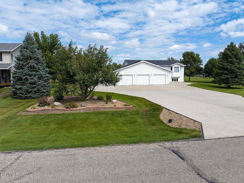 Looking for a rural property with both a HUGE attached garage PLUS an 1120 sq ft SHOP? NEW SHINGLES just installed on both the home and the SHOP! This well-maintained countryside residence is situated on a beautifully landscaped one-acre plot within the desirable Falconer Estates neighborhood. Boasting four bedrooms and three baths, this home spans over 3,000 square feet of finished living space. Upon entry, a grand foyer warmly welcomes guests, while the main level showcases a living room with a charming bow window that flows into the dining area and kitchen. The kitchen has abundant cabinetry, a convenient corner pantry, a spacious island with seating, and recently updated granite countertops (completed in 2022). There is newer laminate flooring in the kitchen and dining area, the refrigerator was replaced in 2022 and the range in 2017. A maintenance-free deck extends from the dining area, overlooking the picturesque yard with mature trees and perennial gardens. The main level hosts two bedrooms, including the primary suite boasting an ensuite featuring a luxurious corner whirlpool tub, separate shower, and linen closet, along with a walk-in closet. An additional main bath, complete with a linen closet, and solid six-panel doors throughout the main floor add to the home's appeal. The lower daylight level offers a sprawling family room anchored by a corner gas fireplace with a stone facade. Two generously sized bedrooms, each boasting walk-in closets, accompany a full bath with a linen closet, as well as a laundry room. There are ample storage options, including attic space accessible via a pull-down ladder in the garage. The attached triple garage, totaling 1,084 square feet, features an extended third stall, is fully finished, heated, has a floor drain, and water access. An additional 28'x40' detached garage/shop that can easily accommodate several vehicles, a boat and lots of toys and an expansive paved driveway complete this exceptional property.