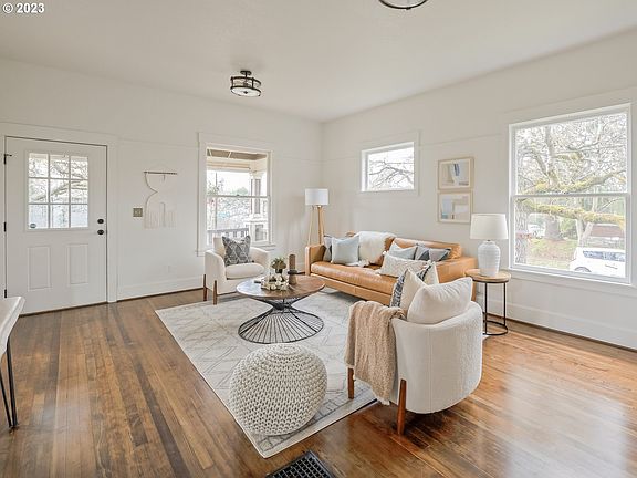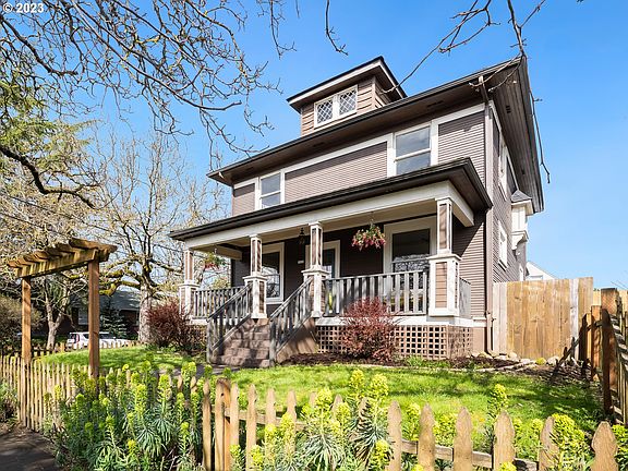 Nestled in the heart of charming Piedmont and sitting high on its perch, this stunning Portland foursquare is a must-see! Picturesque oak trees frame the home on a generous corner lot. Inside welcomes you with an open floor plan, hardwood floors, soaring ceilings, new paint, and floods of natural light. The updated kitchen boasts a large pantry, newer appliances, and eat-in bar, making it the perfect gathering spot. Coveted floor plan with four bedrooms upstairs plus main floor office/den or 5th bedroom. Basement is full sized with tall ceilings, just ready and waiting for your ideas! Out back, enjoy the beautiful outdoors in the large yard, complete with a paver patio, fire pit, custom shed, and raised beds for the urban gardener. And don't forget the location! Ideally situated within blocks of Pollo Bravo, Saraveza, coffee shops, pizza and more, you'll always have somewhere to explore. New Seasons, the MAX, Mississippi Ave, Kenton, and NoPo library are just minutes away. Welcome home to your Piedmont gem! [Home Energy Score = 3. HES Report at https://rpt.greenbuildingregistry.com/hes/OR10110998]