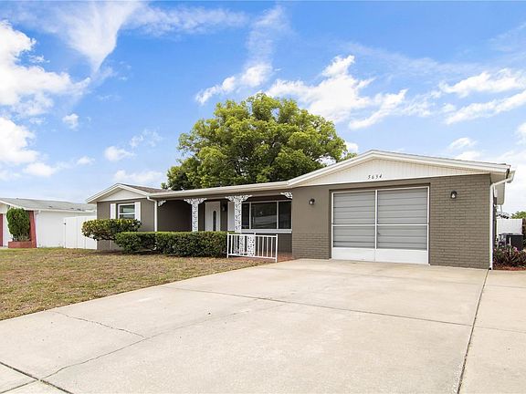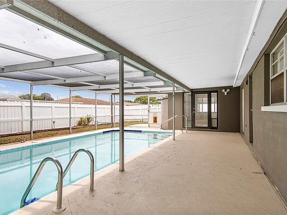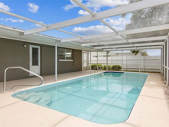 You will love living in style in this turn key pool home remodeled with all the trending elements. This home overflows with updates. New kitchen cabinetry, granite counters with undermount sink, new faucet, new garbage disposal. Samsung Stainless appliances . Master bath that doubles as a pool bath has granite counter with cherry cabinetry. House has been painted in and out. No popcorn on the ceilings. New ceiling fans. 6 panel doors. 18" neutral tile in all room's . Most windows have been replaced. HVAC system just replaced with a 10 year warranty that will be transferred to the new owners. Garage with lots of cabinets for storage , workbench , Chamberlain garage door opener just installed. Pool pump replaced 2020.Four zone sprinkler system . PVC fencing in rear yard and side. Caged pool with a covered patio and outside patio area. Front of home has a covered rocking chair porch. Floor plan makes this home very desirable. Living room and dining area plus a good size family room , that could easily be converted into a third bedroom. Kitchen with a dinette space and a breakfast bar. Location is prime. Live and love the Florida lifestyle in this home.