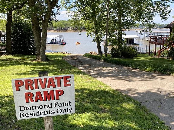 Diamond Point Acres- Quiet community located on a waterfront point on Monkey Island. 925 sq. ft., 2 bedroom 1 full bath home PLUS THREE ADDITIONAL 60 x 110 level and cleared lots. Large back deck and covered patio with partial lake views. NO HOA DUES and PRIVATE boat ramp for owners. Overnight rentals allowed. Hop on the golf cart trails for area golf courses and easy access to restaurants and clubs.