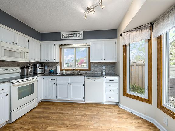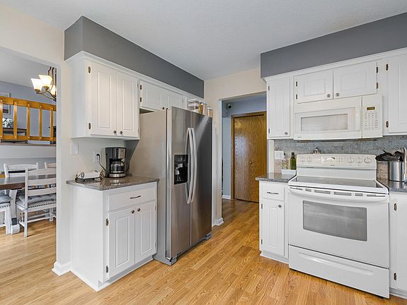 Beautiful 3-level split bursting with natural light and many updates! Main level offers a spacious kitchen with quart countertops and marble tile backsplash, plus a dining room with access to private patio. Upper level features a large master bedroom with walk-in closet, separate vanity, and walk-thru to full bathroom, plus cozy living room and 2nd bedroom. Lower level features a family room with gorgeous fireplace with built-in shelves and grey brick accent wall, ¾ bath, 3rd bedroom, and new washer/dryer. New Roof! The home also offers plenty of storage in the crawl space. Located in top-rated Mounds View school district. Just a few blocks from Shamrock Park, Rice Creek Dog Park, and Rice Creek North Regional Trail Corridor!