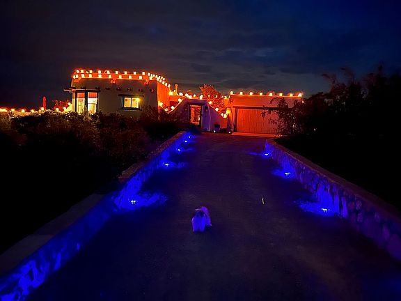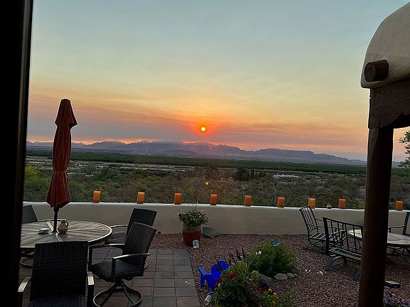 Phone Number 575 805 0109. This is an adobe house built on the western slope of the Rio Grande Valley nine miles east of Las Cruces NM. It has a rustic interior that includes high vaulted ceilings in the living area with wood beams. The dining room has wrap around bay windows that presents a lovely view of the valley. The kitchen and bathrooms have been upgraded with high end Brazilian Granite. Solar power generation has been installed with two Tesla power walls that seamlessly go off grid in the event of power failures and also deliver power after the sun goes down.