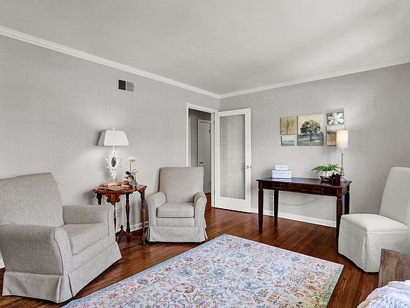 Updated & Move-In Ready! Gorgeous refinished HW floors, smooth ceilings & fresh interior paint. Kitchen w/ beautiful new floor, granite counters, opens to large den w/ FP. Primary BR w/ walk-in shower & large closet. Fantastic floorplan- versatile front room used as office, could be playroom, larger dining space or easily converted to 4th BR. Private backyard w/ large patio- low maintenance, deal for entertaining, irrigation system, rear double carport w/ storage. Prime location & best schools!
