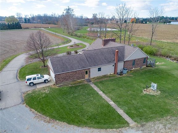 Great 4 bedroom, 3 full bath home on approx 8 acres w/pond, running stream and three outbuildings including new 60 X 120 Amish built barn w/2 overhead doors . The 3600+ sq ft home offers a great floor plan for large gatherings, a great room with cathedral ceiling, brick fireplace open to country kitchen featuring loads of cabinets and counter space plus an island with cooktop. Highlighting the kitchen is a brick wall fireplace and brick oven open to dining area with beautiful views thru the bay window. A long hallway leads to the master with on-suite featuring double vanity, double shower and walk-in closet. Two ample size bedrooms on main floor with a forth bedroom and storage area upstairs. Newer hardwood floors thru-out the main floor. The full finished w/o lower level offers a wet bar, 6 booths, a family room and rec room, the perfect place for entertaining. Relax on the Trex Deck(14 X 60) over looking the tree lined running stream and pond. Approx 7-10 acres.