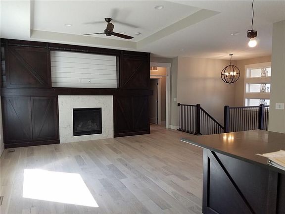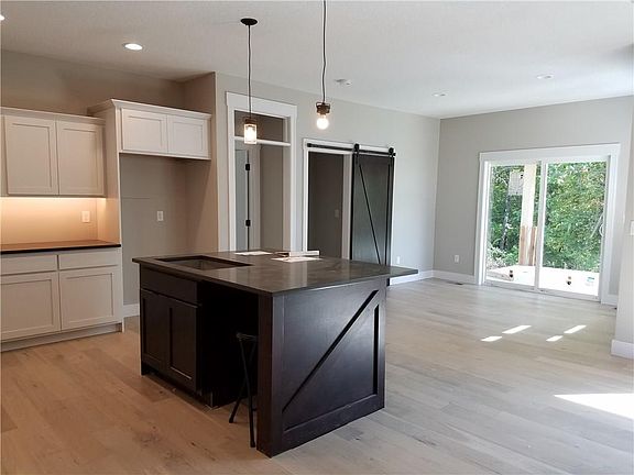 Perfect walk out ranch plan nestled up to timber. Open plan, great sized living room, convenient 1/2 bath, open stair case to the LL. Kitchen has a beautiful center island, abundant cabinets, SS upgraded appliances, pantry, dinette area open to the covered deck. Private master suite backing to the trees, walk-in closet and tile shower, dual vanity, ceiling fan, separate toilet room and beautiful lighting, open to the laundry room. Mudroom with lockers at the 3 car garage entry. Second and third bedrooms are on opposite side of home with a full bath and dual vanity. Barn doors, awesome executive finishes through out, private lot with full sod and more. Come take a look at all of Metro Homes, or just check out this new development with a private lake, walking paths and lots of timber. Many home sites to choose from - Live, work and play in this wonderful area, 15 minutes to downtown for an easy commute and don't forget 5 year tax abatement!!