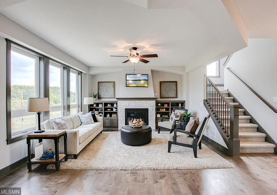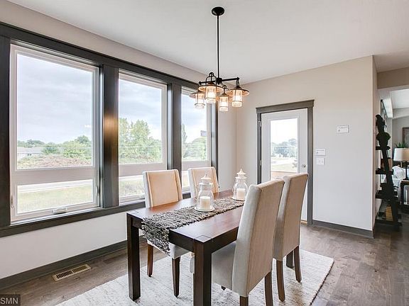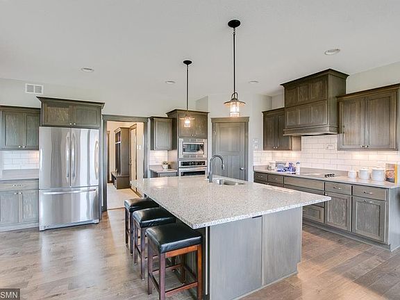 This model home is complete and located in the Sunnybrook/Dutch lake Knoll neighborood. Landscaping, sod & irrigation will be going in soon. Open & spacious kitchen, dining and living room. Desirable mudroom w/ built in lockers and media center. Fireplace. 5 bedrooms plus loft. LL offers great space for a movie room. Inc wet bar and entrance to the indoor sport-court. Inc: access to Dutch Lake Knoll for non motorized sports. Close to schools and downtown Minnetrista! Exceptional neighborhood. Location, location!