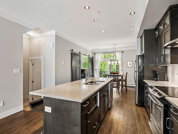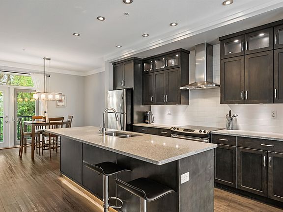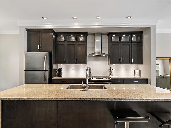 Welcome to HIDDENBROOKE - This Georgian styled town home is perfectly situated in the hub of Promontory, this stunning unit features 3 beds + den, 3 baths, laundry up, and backs onto gorgeous greenspace with tranquil creek! Walk into an inviting open concept kitchen, large island, quartz counters and SS appliances. Enjoy entertaining with this totally open main floor with 9' ceilings. Additional 350 sqft flex room in the basement. Envision your kids play area, a tranquil place for yoga or a incredible space for home gym, office or media room! Single car garage with extended driveway for additional vehicle. This is a cozy complex of 20 units, family friendly and allows for pets and rentals (with some restrictions) don't miss out on this opportunity to get into the market!