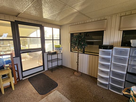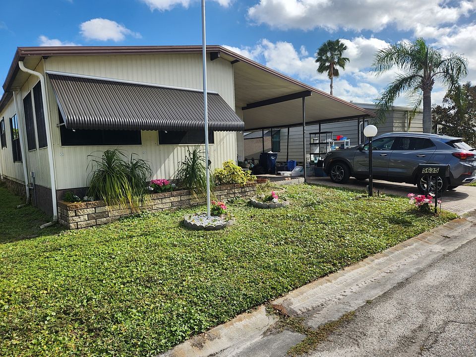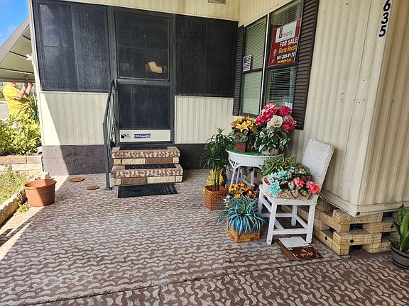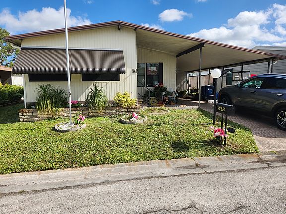 Introducing this lovely 2 bedroom 2 bath home located in sunny Florida on a quiet street. This home features a range, dish washer, garbage disposal, washer and dryer. The house has an open floor plan and a cheerful kitchen together with an enclosed Florida room, a patio enclosed and an attached storage shed. The floors are carpet, wood laminate and tile. The roof is metal and there is a large carport that will house 2 cars. There is an electric water heater and central air throughout this wonderful home. The lot rent is 967.17 and includes water, trash, sewer, lawn care and cable for two Tv's. Located in a great park, Windmill Manor, this park offers a clubhouse, community pool, library, billiards, game room, shuffleboard court and a dog park. It is pet friendly and allows 2 pets 25 pounds in weight. It is conveniently located to Restaurants, shopping plaza's. medical office, airports and our beautiful Florida Beaches. You will love this home, so please do not delay so call me at your earliest convenience for a showing. All listing information is deemed reliable but not guaranteed and should be independently verified through personal inspection by appropriate professionals. Integrity Mobile Home Sales cannot guarantee or warrant the accuracy of this information, measurements, or condition of any property. Measurements are approximate. Lot rent is subject to change.