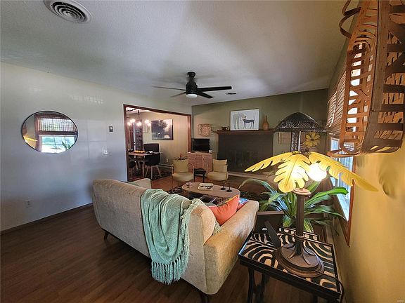 Looking for EASY LIVING~this is an ideal starter home or those looking to downsize and need everything on one-level. Ownwer has a decorator's touch. New colors, shades, special touches give this home a cozy feel. Well maintained 2 bedroom/2 bath and small office. Walk-in to the open floor plan featuring easy care laminate flooring and enjoy the warmth of the newly replaced gas log fireplace. Adjacent kitchen/dining room combination with plenty of oak cabinets, closet pantry, the kitchen appliances will stay, refrigerator new in 2024. Primary bedroom has a private bath with shower and walk-in closet. 2nd bath is combined with the laundry, washer & dryer will stay. There’s some flex space as you come in from the garage and a small office. Flat back yard with recently installed gazebo provides a gorgeous outdoor living space. 2 concrete patio’s and gardening shed. Other features include: Metal roof newer, central air newer, electric baseboard heat, replacement windows, 200 amp service.