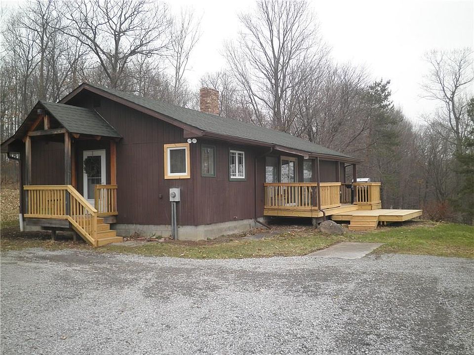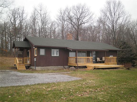 Exceptional country ranch nearly hidden on wooded hill top...wonderful view of Canandaigua lake from the open front porch. Open floor plan recently updated with two bedrooms, master suite with en suite. Very private acre plus lot.