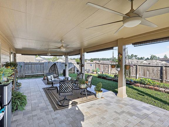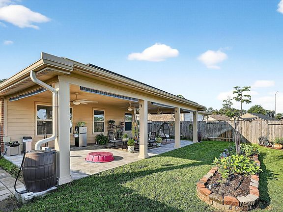 ENJOY SOLAR PANELS= $60-$70 monthly electric bill. Well-maintained 4-bedroom, 2.5-bath one story home located in desirable Hampton Creek. This home features an open floor plan with high ceilings, and neutral finishes throughout. The kitchen offers stainless steel appliances, ample cabinet and counter space, and a large breakfast bar that opens to the living area. The spacious primary suite includes a walk-in closet, dual vanities, soaking tub, and separate shower. Outside, enjoy a private backyard with no back neighbours, your own 30x15 covered patio and a 30x4 organic garden includes: Basil, Green Beans, and Sweet potatoes. Conveniently located near schools, shopping, dining, and major highways (I-45, 99). This home has been freshly painted. Zoned to desirable Klein ISD. Community amenities include: pool, pavilion, walking traild and a park. REFRIGERATOR, 8000W GENERATOR INCLUDED. Washer, Dryer optional on request.